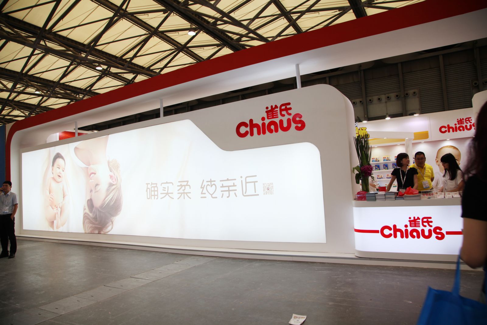用媽媽般的愛呵護寶寶健康成長,給寶寶媽媽般的親近體驗是雀氏一直秉承的產(chǎn)品理念。此次雀氏展館以紅、白為主色調(diào),創(chuàng)新性的采用半封閉式的外觀設計,柔和的線條處理,巧妙的色彩搭配,合理的空間規(guī)劃,處處體現(xiàn)出雀氏親近的品牌情感,拉近了雀氏與觀展者的距離。