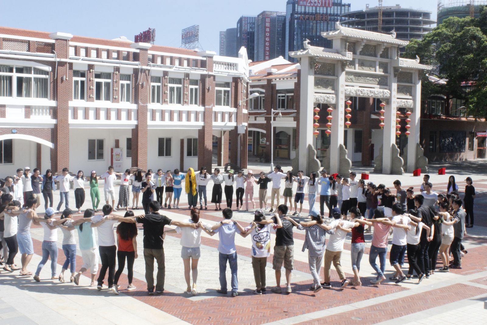 15:00,所有成員齊聚觀音山。通過各類素質(zhì)拓展游戲,搭建電商中心各部門溝通橋梁。培訓(xùn)學(xué)院首先為學(xué)員安排素質(zhì)拓展“心連心”游戲,所有成員圍成一個大圓,大家肩并肩,共同進(jìn)退,伴隨著“雀氏加油、電商中心加油”的吶喊聲,所有成員已然全心投入。