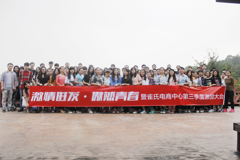 2015年10月30日,值此雀氏培訓(xùn)學(xué)院成立一周年之際。由電子商務(wù)中心主辦、雀氏培訓(xùn)學(xué)院承辦的“激情迸發(fā)、傲然青春”暨電商中心第三季度團(tuán)隊(duì)激勵(lì)會(huì),在繁花似錦的梅海嶺景區(qū)隆重舉行。
