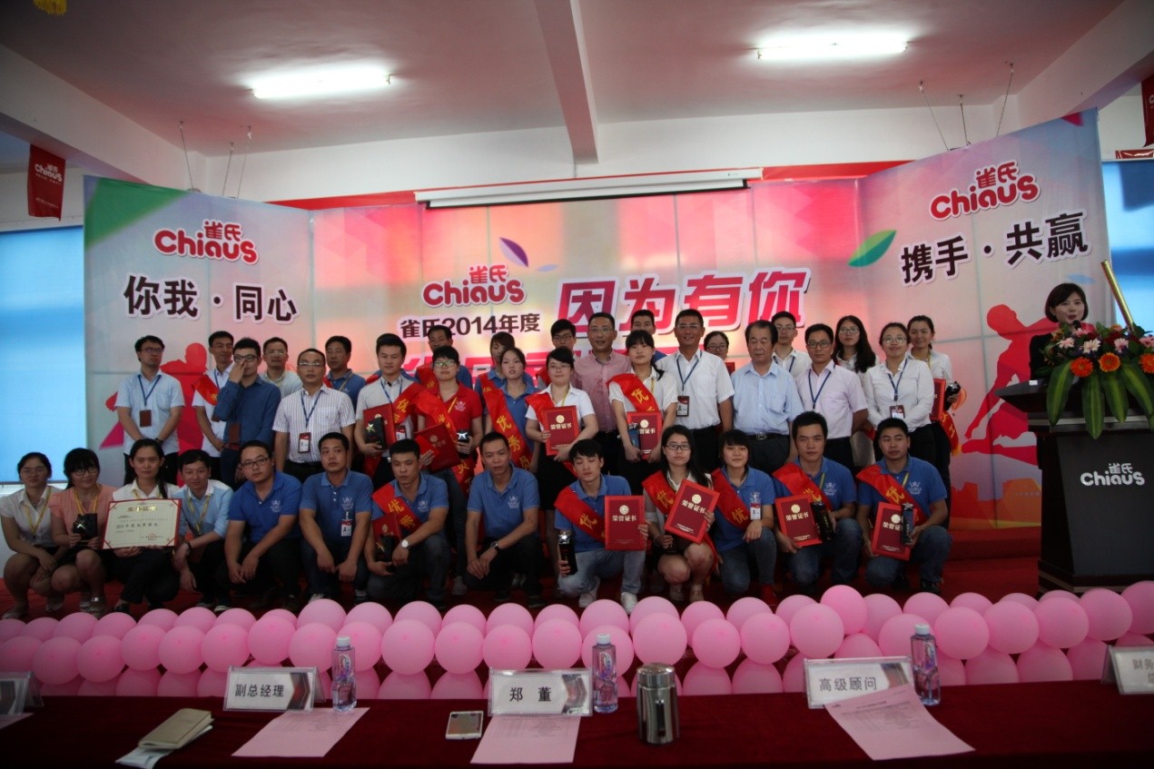 激情紅五月,共筑雀氏夢(mèng)。2015年5月16日下午,雀氏(福建)實(shí)業(yè)發(fā)展有限公司在公司總部隆重召開“因?yàn)橛心?,雀氏更精彩?014年年度表彰大會(huì)”。公司董事長(zhǎng)鄭佳明先生攜手各部門負(fù)責(zé)人親臨會(huì)場(chǎng),與來(lái)自各系統(tǒng)近500名員工參加了此次盛會(huì)。
