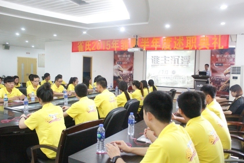 盛夏七月,是一個(gè)驕陽(yáng)似火、絢麗多彩、熱情奔放的季節(jié),2015年7月13日,由雀氏培訓(xùn)學(xué)院與雀氏銷(xiāo)售中心共同舉辦的“‘鷹擊長(zhǎng)空?壯志凌云’暨雛鷹半年度述職報(bào)告”在惠安總部隆重召開(kāi)。公司高層一直以來(lái)對(duì)雛鷹的成長(zhǎng)非常重視,銷(xiāo)售中心副總監(jiān)張軍先生、綜合管理中心副總監(jiān)王然女士、培訓(xùn)學(xué)院院長(zhǎng)李奕先生、銷(xiāo)售中心管理部主管張冰冰女士等公司領(lǐng)導(dǎo)出席了本次會(huì)議。