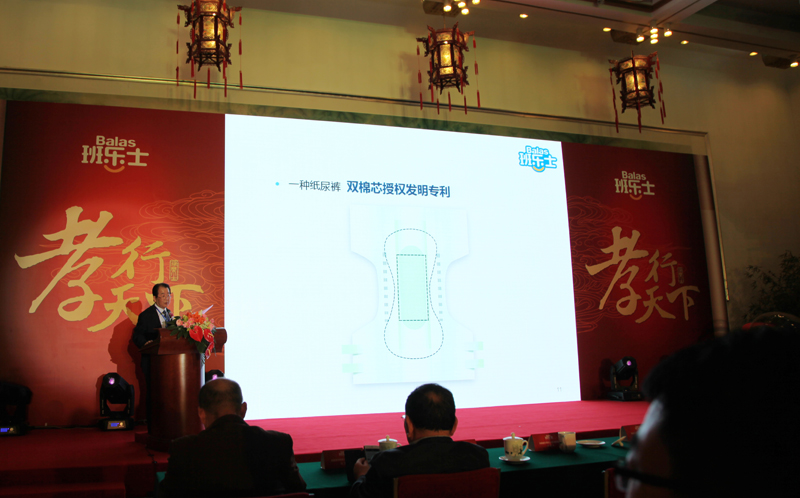 (雀氏集團技術顧問親臨孝行天下活動現場講述班樂士大小雙棉芯專利技術)