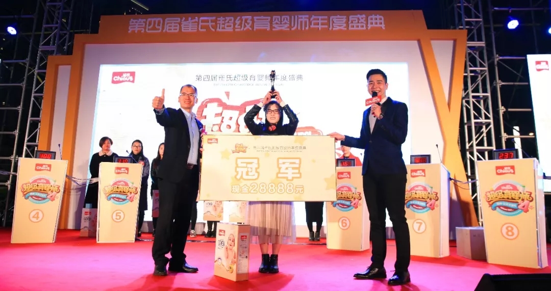 在經過【揚帆起航】、【誰將誰點兵】、【誰與爭鋒】、【潮爸潮媽換尿褲比拼】、【王者歸來】5輪激烈論戰(zhàn)后,最終來自福建龍巖的梁文秀選手,憑借儲備全面的育嬰知識和現(xiàn)場機智的反應能力摘得本屆雀氏超級育嬰師桂冠。
