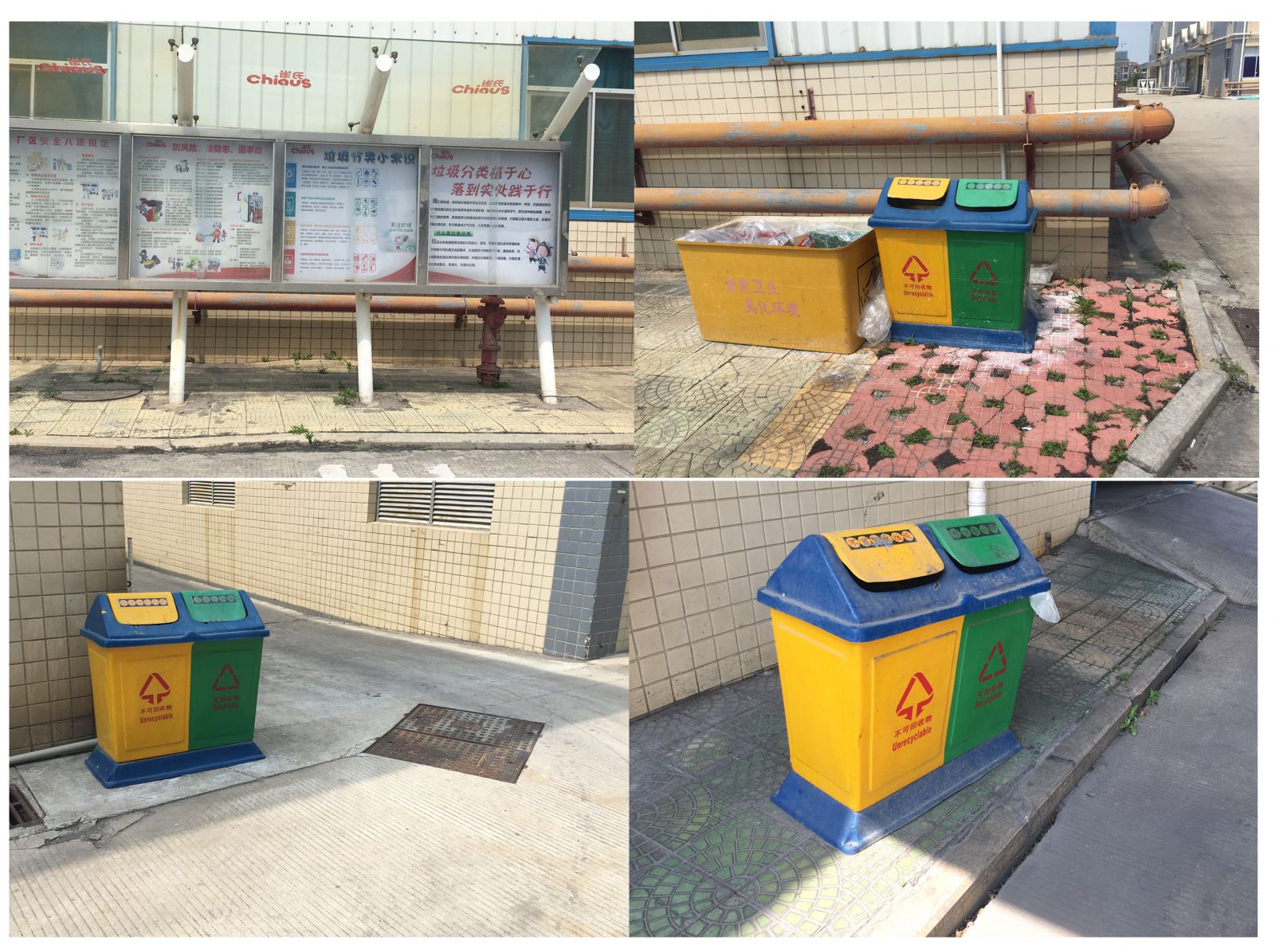 廠區(qū)內執(zhí)行垃圾分類,隨處可見。