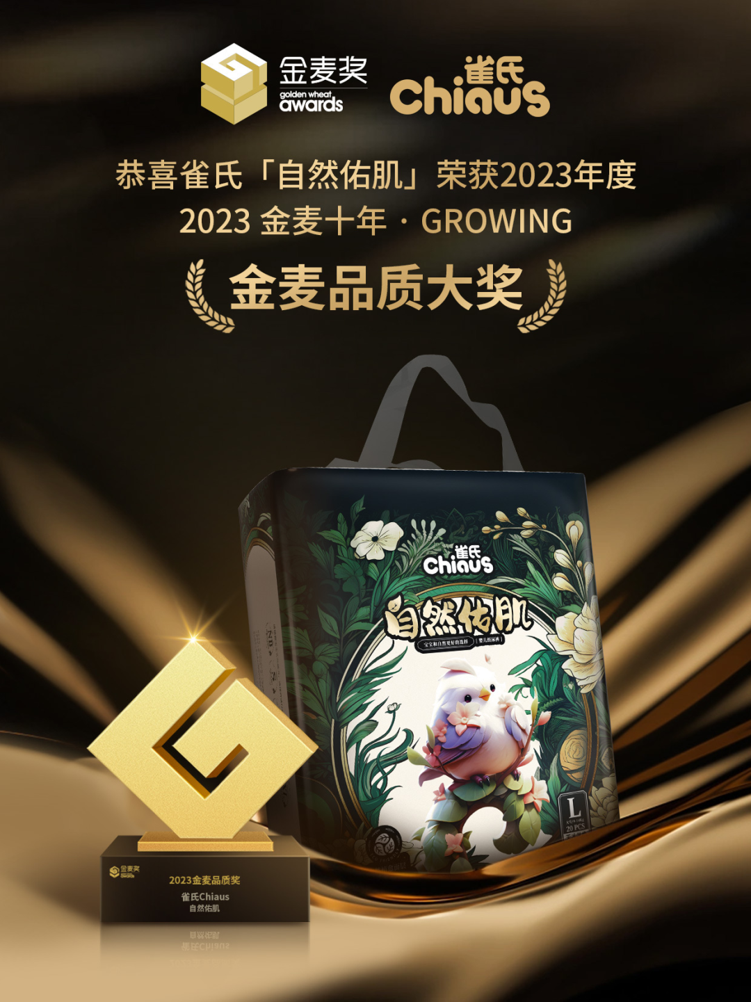 近日,以“內生的力量”為主題的2023金麥品質獎頒獎盛典在杭州落下了帷幕。此次頒獎活動,雀氏集團高端形象款紙尿褲自然佑肌與新日用品線產品純親近一次性內褲,從來自食品飲料、家居家紡、美妝洗護等行業(yè)類目的400+產品中脫穎而出,雙雙斬獲【2023年度金麥品質大獎】。