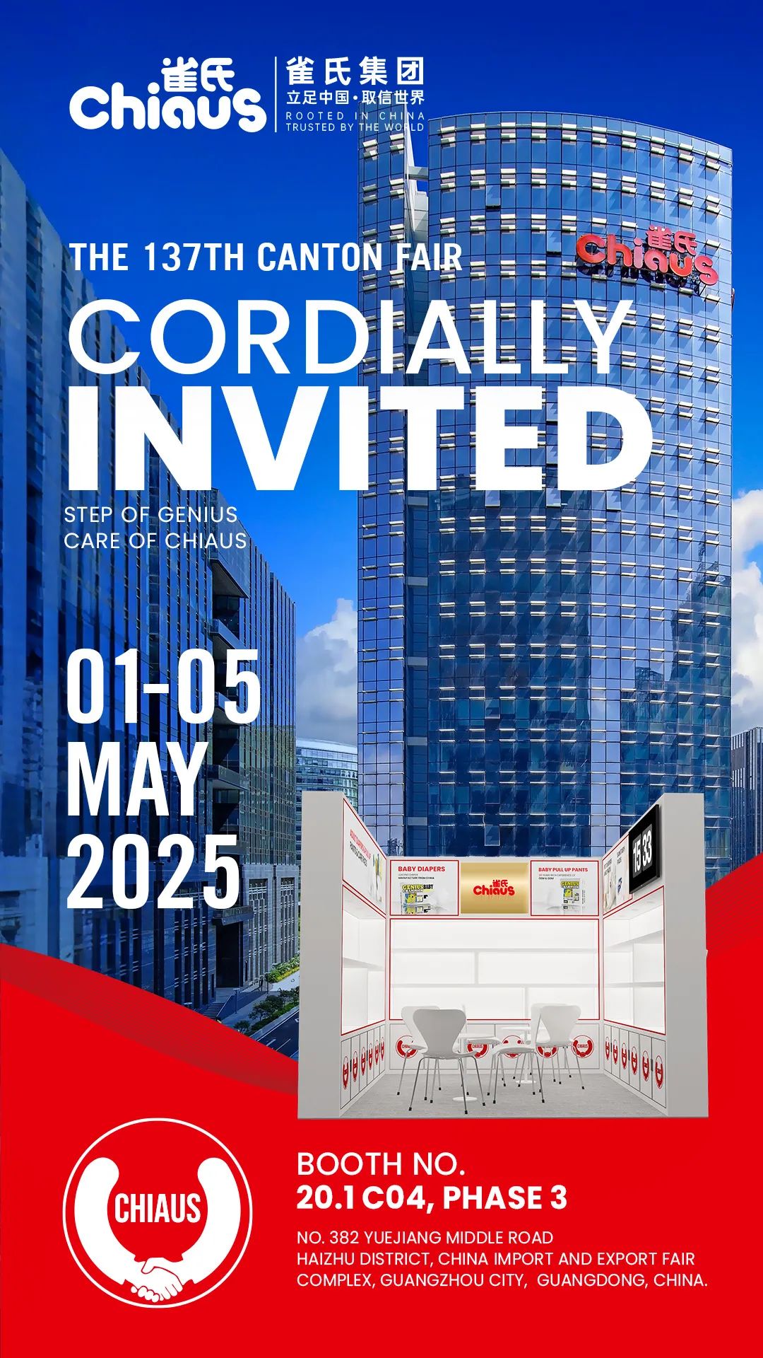 Chiaus, as the 20 years of disposable maternal and infant care products manufacturer would like to invite u visit us in the 137th Canton Fair: