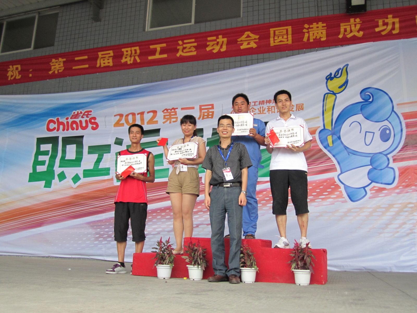 本次運動會在短短兩天時間內(nèi),共設(shè)籃球賽、4×100接力賽等五項團(tuán)體賽以及自行車慢騎、歌王爭霸等七項單人賽。賽事不斷,精彩紛呈,歡呼聲、吶喊聲此起彼伏。各代表隊團(tuán)結(jié)協(xié)作,奮勇爭先,努力拼搏,比賽在各項目裁判員有序的組織下進(jìn)行。最終,生產(chǎn)四隊、財務(wù)中心隊和市場中心+嬰童隊獲得團(tuán)體總分前三名。銷售中心陳總監(jiān)為他們頒獎,第二屆職工運動會至此正式落下帷幕。