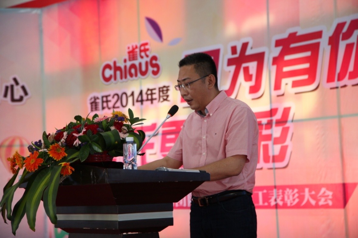 此次表彰大會(huì)最后,董事長(zhǎng)鄭佳明先生上臺(tái)進(jìn)行總結(jié)性發(fā)言。鄭董指出,公司在2014年“升級(jí)研發(fā)實(shí)力、拓展?fàn)I銷渠道、創(chuàng)新推廣模式、整合品牌資源、提升服務(wù)質(zhì)量”等各項(xiàng)工作中所取得的成績(jī)和榮譽(yù),與雀氏每一位員工的辛苦付出密不可分。希望獲獎(jiǎng)的部門及個(gè)人永葆先鋒模范作用,公司上下團(tuán)結(jié)一心,共同奮戰(zhàn),再創(chuàng)佳績(jī)。