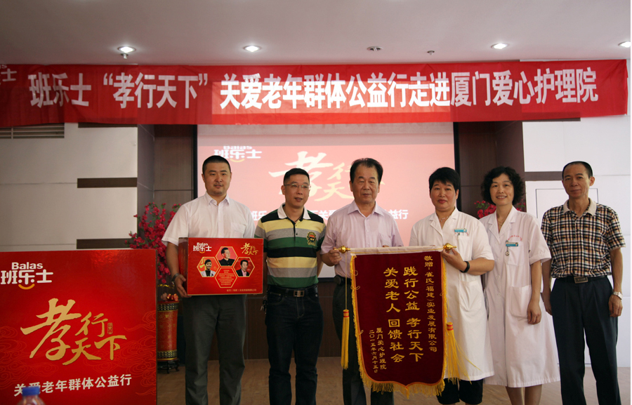 百善孝為先,古往今來中國人就非常重視“孝道”, 尊老、敬老、愛老是全社會(huì)的責(zé)任和義務(wù)。為弘揚(yáng)傳統(tǒng)孝道文化,呼吁更多的社會(huì)力量參與到關(guān)愛老年群體公益活動(dòng)中來,班樂士4月18日在人民大會(huì)堂啟動(dòng)“孝行天下”關(guān)愛老年群體公益活動(dòng)項(xiàng)目之后,攜手中國老齡事業(yè)發(fā)展基金會(huì)將在全國十余所養(yǎng)老院等福利機(jī)構(gòu)展開愛心公益捐贈(zèng)活動(dòng),并于6月15日走進(jìn)廈門開展愛心公益捐贈(zèng)活動(dòng),慰問老人們,踐行孝行天下。