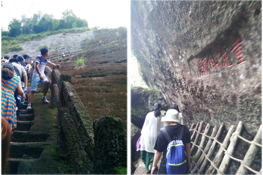 一線天風(fēng)景區(qū)了,是武夷山最具挑戰(zhàn)性的景點,由于整個路線呈攀爬姿勢,不到最后出口并不能感覺到盡頭。最窄的地方只能側(cè)著身緩緩挪動,伸手不見五指,僅能靠巖壁上景區(qū)管理處安裝上的小燈辨別出腳下的階梯,而身形稍微肥胖的游客甚至要“貼”在墻面上,挪動時能感受到仿佛兩面巖壁在擠壓著身體。游客們在此處經(jīng)常會害怕其實最黑暗的時刻就代表著光明即將來臨。過了那段0.3米的“驚險”通道,就已經(jīng)能見到微弱的陽光,再往上攀爬過幾個大階梯,就是武夷山一線天的盡頭處了。走出一線天洞口,見到陽光下武夷山的奇峰怪石,仿佛是獲得了新生一般,心底有一種對生命的無限喜悅。